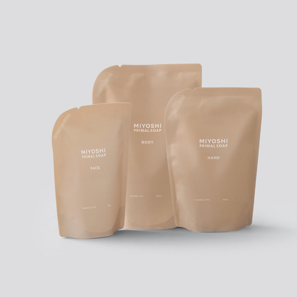 「無添加」であることは、MIYOSHIにとってあたりまえのこと。「MIYOSHI PRIMAL SOAP」はその先へ踏み出し、肌にとって本当に必要な処方を、脂肪酸の配合レベルから見直すなど、用途ごとにさらに突きつめました。30年以上変わらず支持されてきたMIYOSHIの処方に、今の視点で改良を加える。それは、変わらない信頼のために、変わりつづける姿勢です。