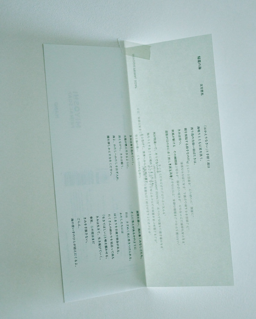 グラシン紙にやさしく包まれたボトルは、どこか懐かしい、古来のせっけんを思わせる装い。過剰な装飾を避け、必要な機能と品のある佇まいだけを残して、環境にも配慮した“贈りもの”のような姿に仕上げました。さらに、ラベルの裏側には、写真家・岩倉しおり氏の写真と詩人・文月悠光氏による詩をアソートで掲載。やわらかな光に包まれた風景と、澄んだことばが響き合い、日常の中にひそむ豊かさを、そっと映し出します。