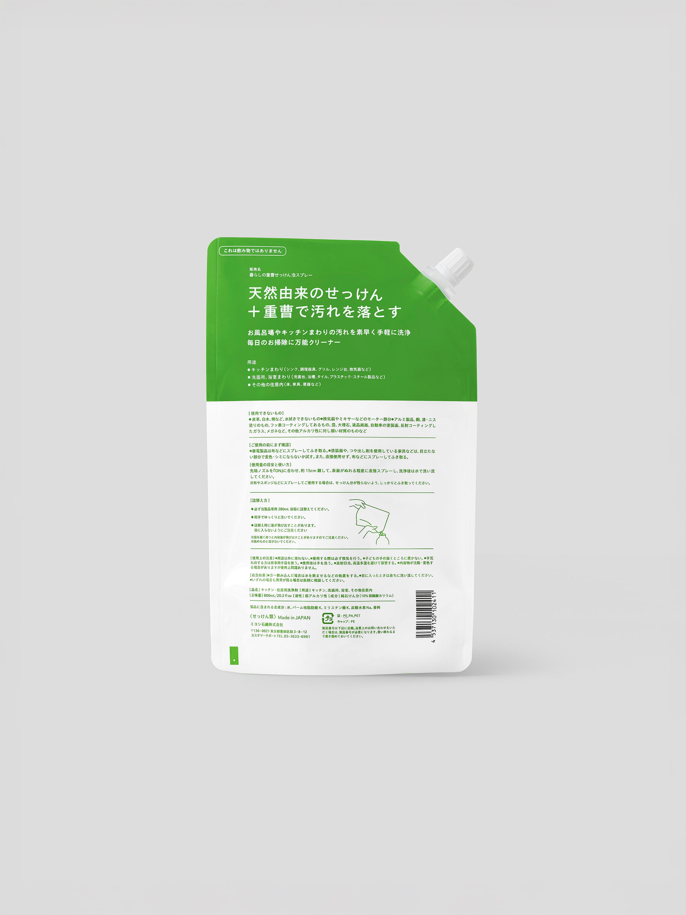 せっけんの力と重曹で汚れをしっかり落とす、スプレータイプのナチュラルクリーナー。泡で出るからバスルームからキッチンまで手軽に活躍。泡切れがいいので、掃除もスピーディーに。肌にやさしく、手あれにも安心です。爽やかなユーカリ系の香り。600ml(約2回分)の詰替用。